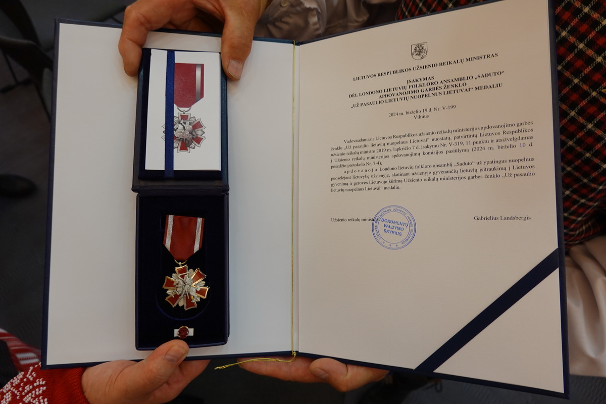 2024 m. liepos 3 d. Lietuvos užsienio reikalų ministerijoje “Saduto” buvo įteiktas apdovanojimas “Už pasaulio lietuvių nuopelnus Lietuvai”.