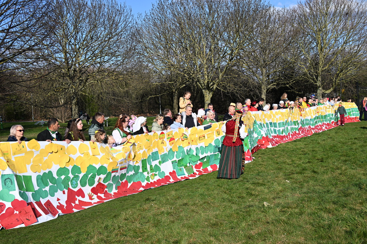 Eisenoje Lietuvos vėliavą nešė Cork‘o lietuvių bendruomenės atstovai, paskui juos su daina ir linksmu šokiu, pasipuošę tautiniais kostiumais, žiūrovus linksmino "Saduto" ansamblio dalyviai. Malonu buvo girdėti palaikymo šūksnius ir aplodismentus, o dar maloniau išgirsti iš minios mus sveikinančius ir kartu dainuojančius lietuvius.