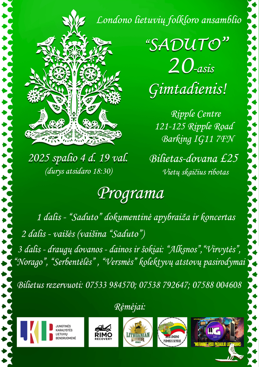 2025 m. rugsėjo 19 d. 20val. "Saduto" jungiasi prie šokančios Lietuvos Londone!