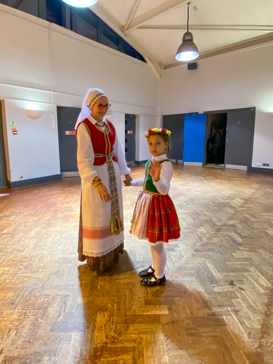 Pirmuosius tautinius rūbus saviveiklininkai persisiuvo iš senųjų, saugomų JK lietuvių bendruomenės pirmajame Londono skyriuje, investavę nemažai ir savo lėšų. Tuometinė vadovė D.Martinkėnienė pati sėdo prie siuvimo mašinos, ir, studijuodama literatūrą, pasiuvo kostiumus, tinkamus scenai.